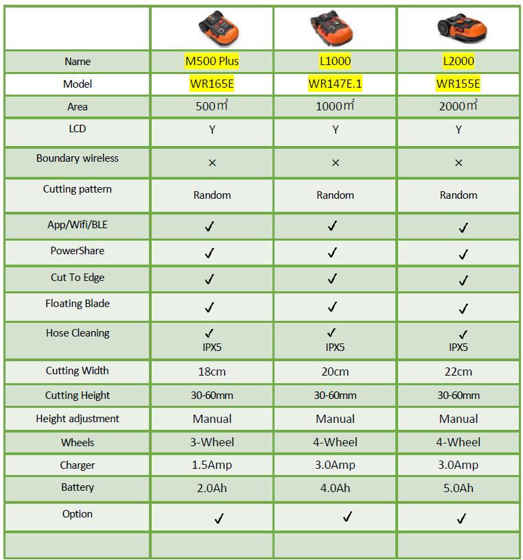 - Automatically charging: Return to docking station after mowing/battery is low.